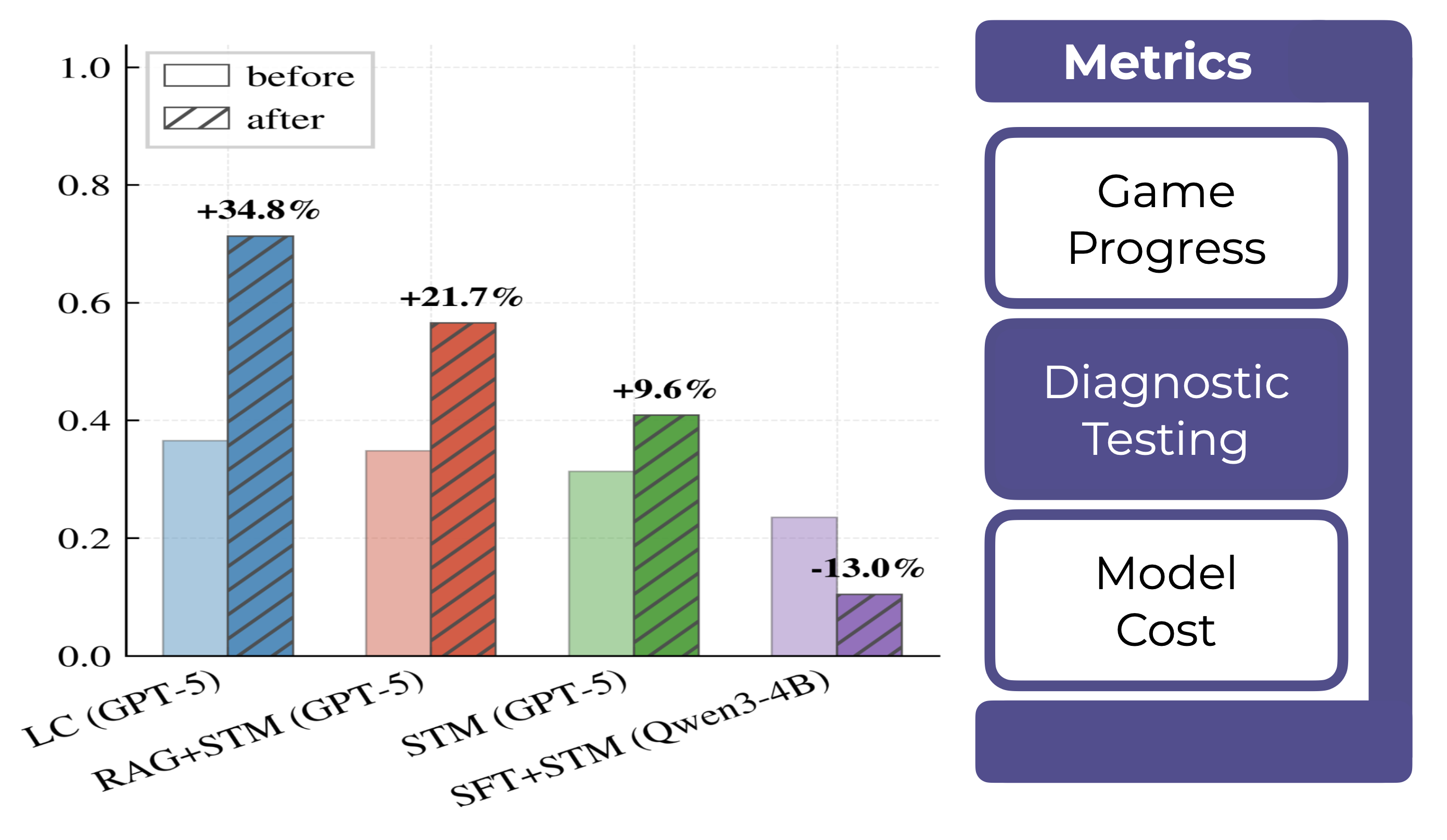 From experiments across diverse agent paradigms and LLM backbones on procedurally generated games.